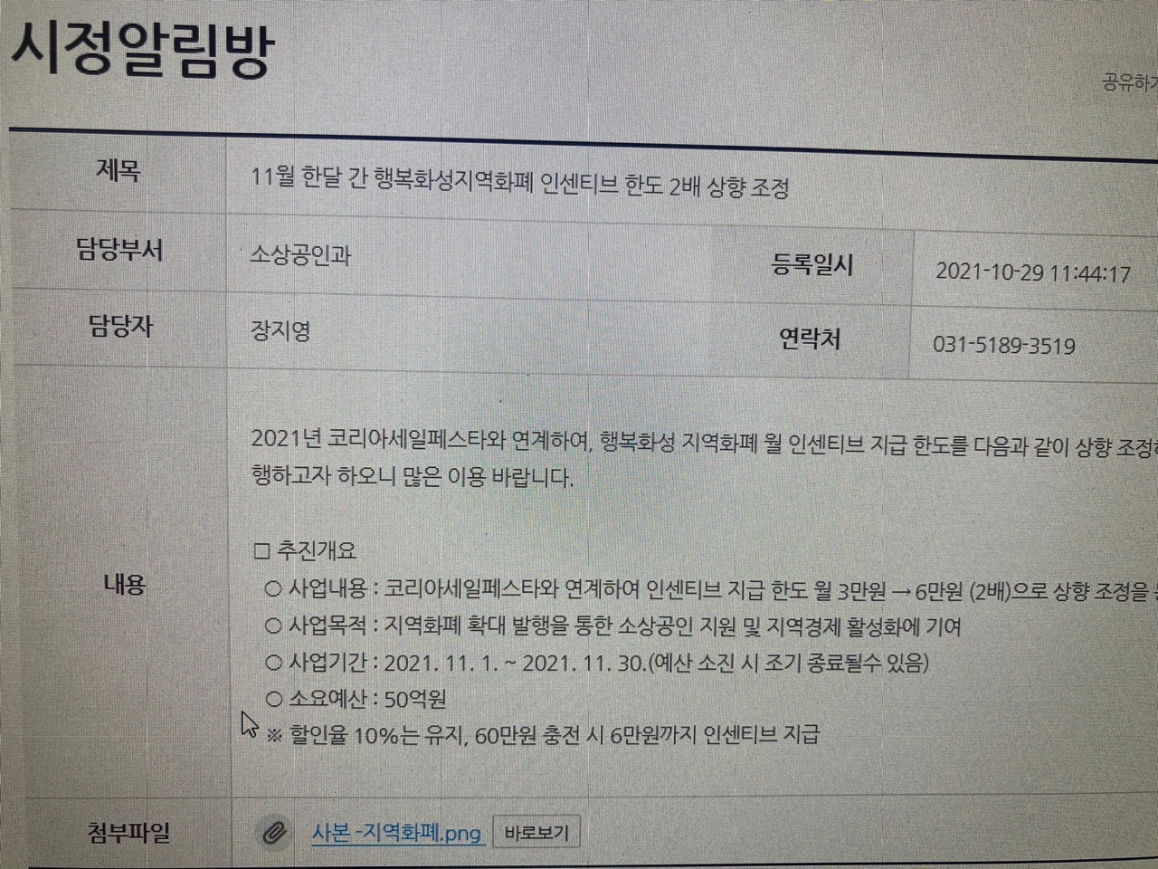 - 행복화성지역화폐 새소식 -