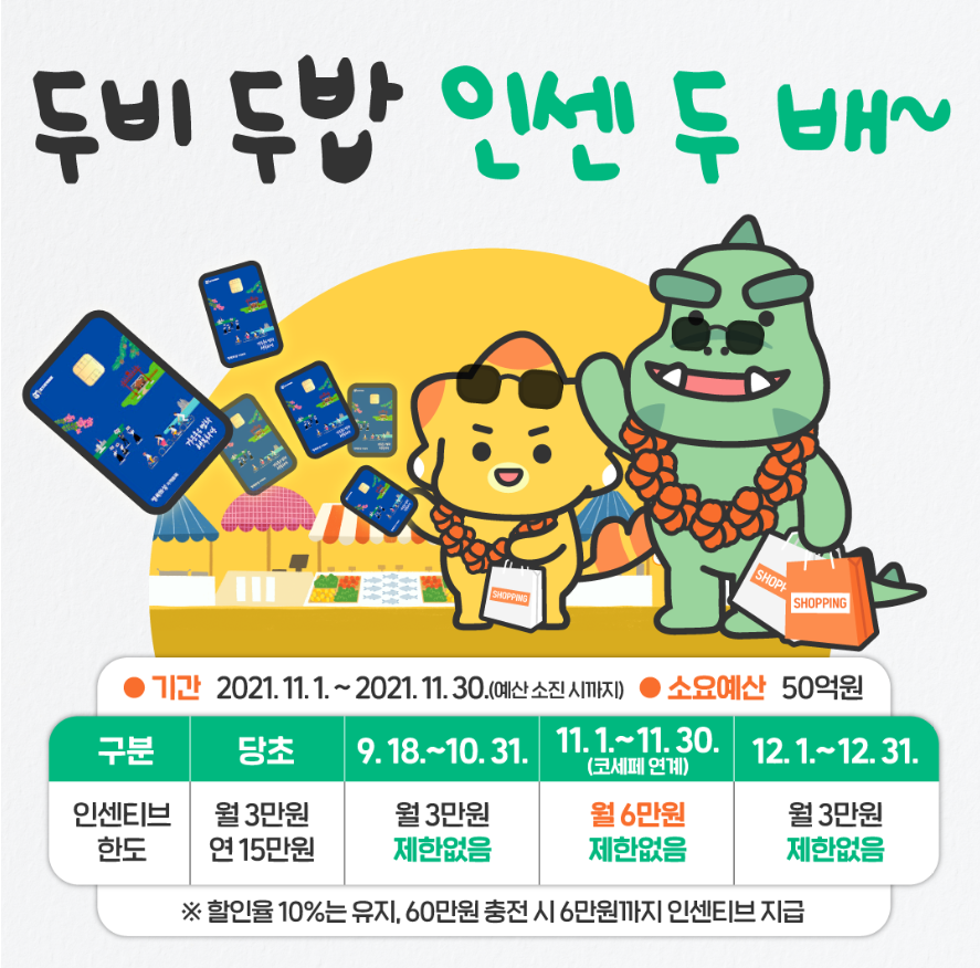 11월 한달간은 60만원 충전에 6만원의 인센티브를 더해서 66만원이 지역화폐에 충전된다는 이야기입니다.