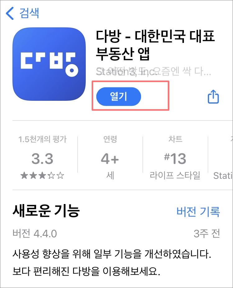■ 다방 앱 다운로드 및 업데이트