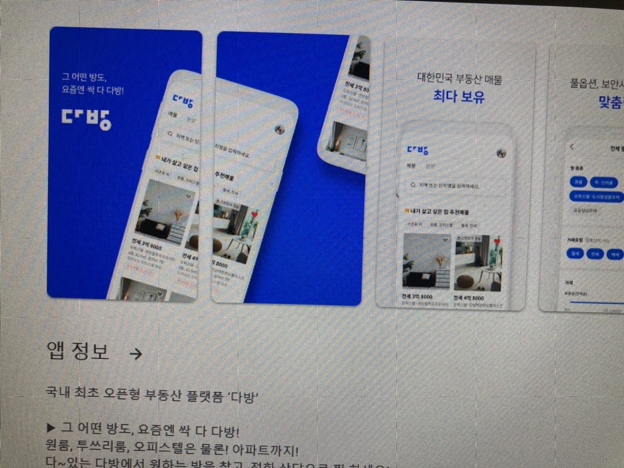 아래는 모바일에서 다방 앱 다운로드 페이지입니다.